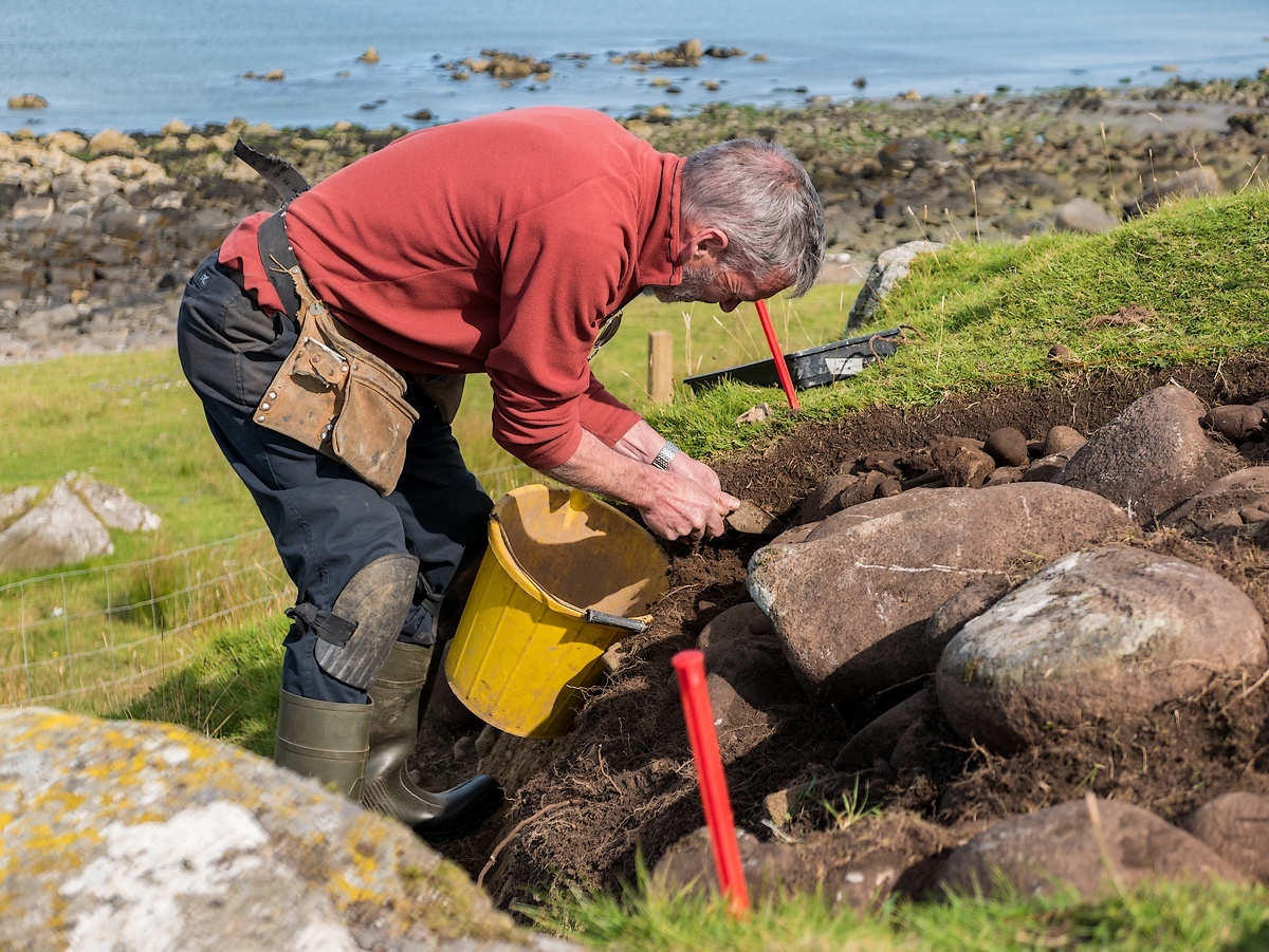 During the week-long community excavation at Lag na Sailean in 2015, Dugie was truly in his element and a real driving force alongside Dan Lee of the UHI’s Archaeological Institute. More than two hundred people of all ages attended The Dig, entitled ‘Fo Fòid na Tìme’. Dugie was equally at home teaching the schoolchildren, as he was with the intrigued older members of the community. Dugie was self-taught but the respect shown by the archaeologists on site shone through from Day One.